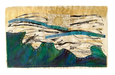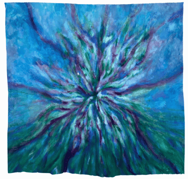Technique mixte : Peinture à l'huile sur toile et satin, broderie.