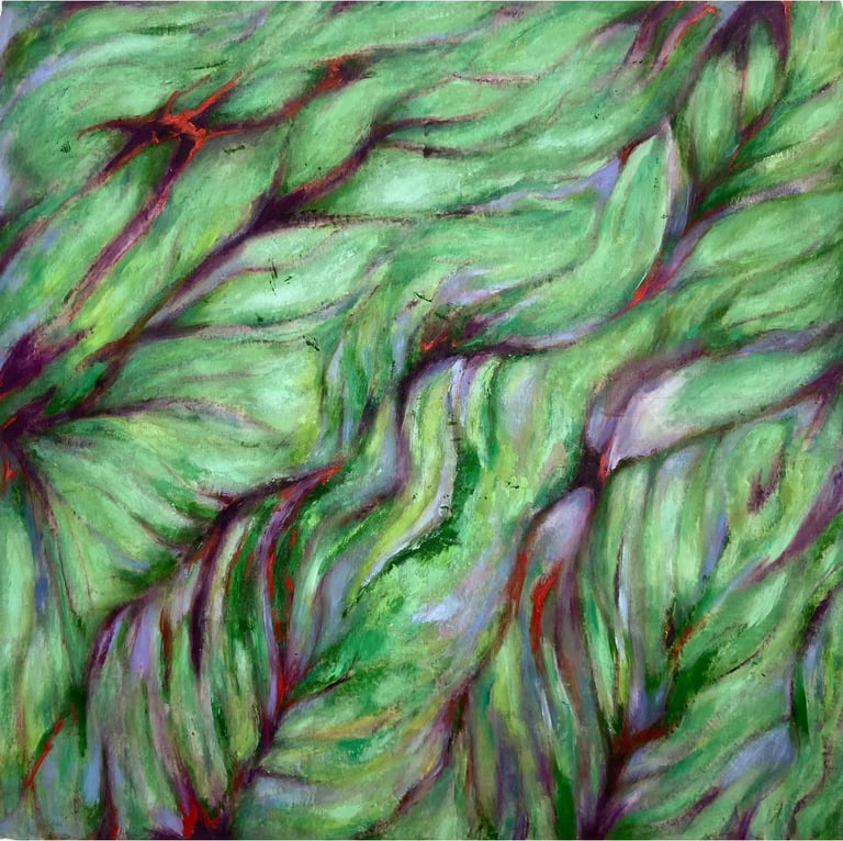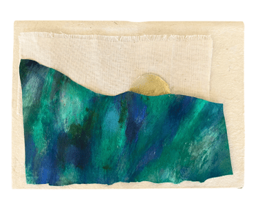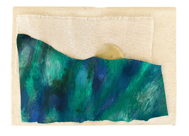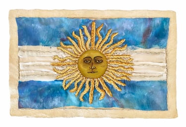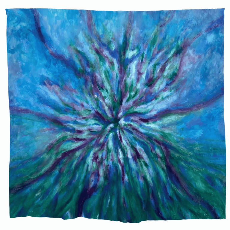Technique mixte : Peinture à l'huile sur satin et gouache dorée sur toile ; sur papier artisanal de Colombie.