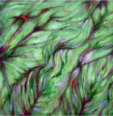 Technique mixte : Peinture à l'huile sur satin et gouache dorée sur toile ; sur papier artisanal de Colombie.